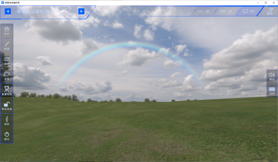 事实上如果条件合适的话,可以看到整圈圆形的彩虹,然而,因为看的人在地面上,彩虹的另一半被大地遮挡,所以我们就只能看到半个环。在飞机上,如果能有幸见到彩虹,就可能会看到整圈的彩虹。