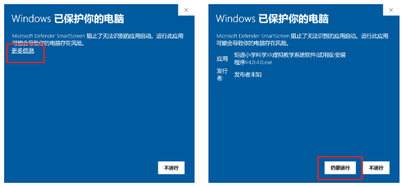 第四,当页面出现该信息时,点击“更多信息”,再选择“仍要运行”。