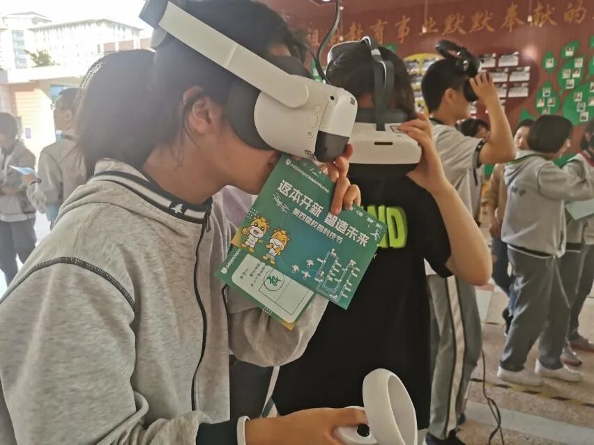 本次活动的“主角”是矩道初中生物VR 3D虚拟仿真实验室,2022新课标指出跨学科融合创新的方向,矩道初中物理+化学VR 3D虚拟仿真实验室同场展出,基于校本选修课中开展的跨学科创新实践课程,矩道科技的老师们现场指导学生的从不同路径进行沉浸式体验感知,为同学们种下跨学科融创生长的种子,助力全新的跨学科融合新体验。