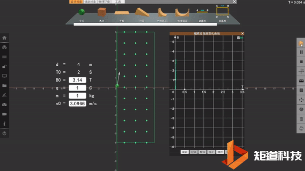 力学探究平台,可谓矩道的拳头产品,支持学科深度探究学习,新版本不仅在多个运动对象之间实现了组合体功能、做到了弹簧与物体之间的可脱离、可分段编辑的周期性电磁场等现有器材功能上的升级,还新增了一系列器件,如传送带、穿心轨道、圆锥曲面、辐射型电磁场、可在磁场中运动的金属杆等等。