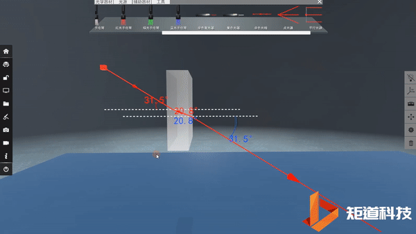 新版本对光学探究平台也进行了多方面升级,开放了更多的变量,增加了文本、曲线、图片等辅助分析工具,也升级和新增了一系列器材,如玻璃砖功能升级,新增F光源、半透半反镜、漫反射、光导纤维等等。
