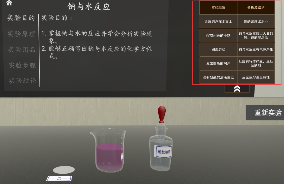 以新教材为依据,对实验内容进行了优化,对实验用品和实验步骤删繁就简,增加了一些列数据记录及分析表格。另外,新增两个微观动画,并根据用户的使用反馈提升了操作体验。
